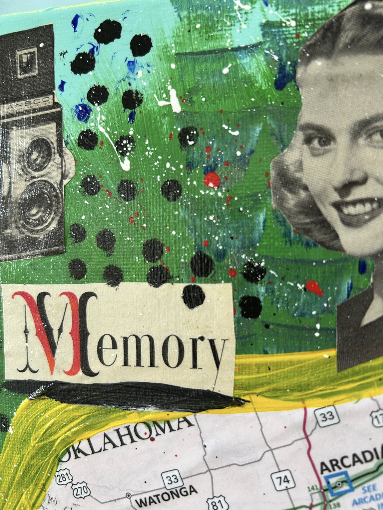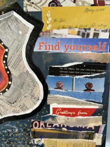 Liz Cousins is a multimedia artist who lives and works in Tulsa, Oklahoma and sells her photography, collages, and handmade items under the name Retrospective. Her work explores themes of reminiscing and nostalgia, and are often made with upcycled vintage items, keeping pieces of the past alive in a modern way.